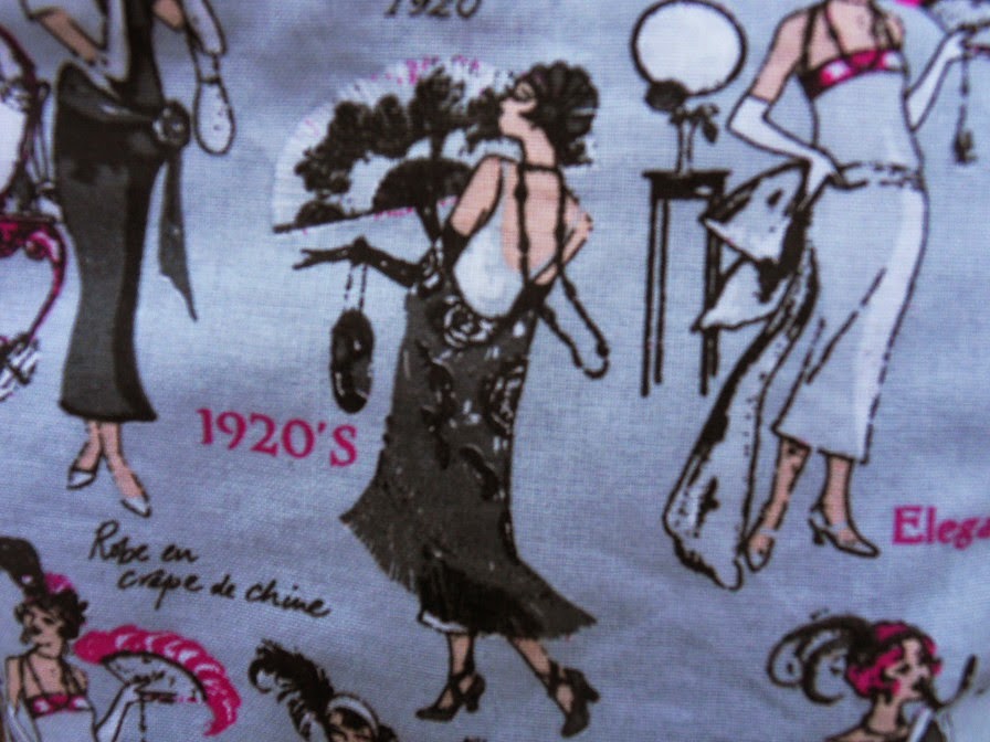 Une trousse à maquillage très années folles... cousue dans une coton gentiment rétro avec de jolies femmes des années 20. C'est noir et blanc avec une petite touche de rose.